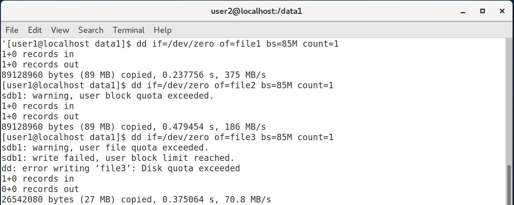 edquota -p user1 -u user2 ## 直接将user1的配置给user2