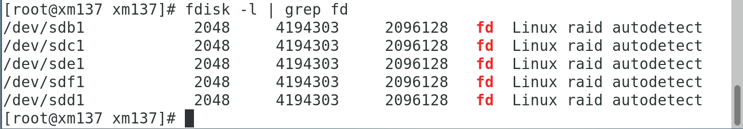 fdisk -l | grep fd ##查看5个分区是否存在