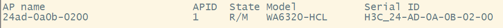 AP名称为MAC地址,序列号为H3C_开头+AP的MAC地址,且状态为 运行/主设备