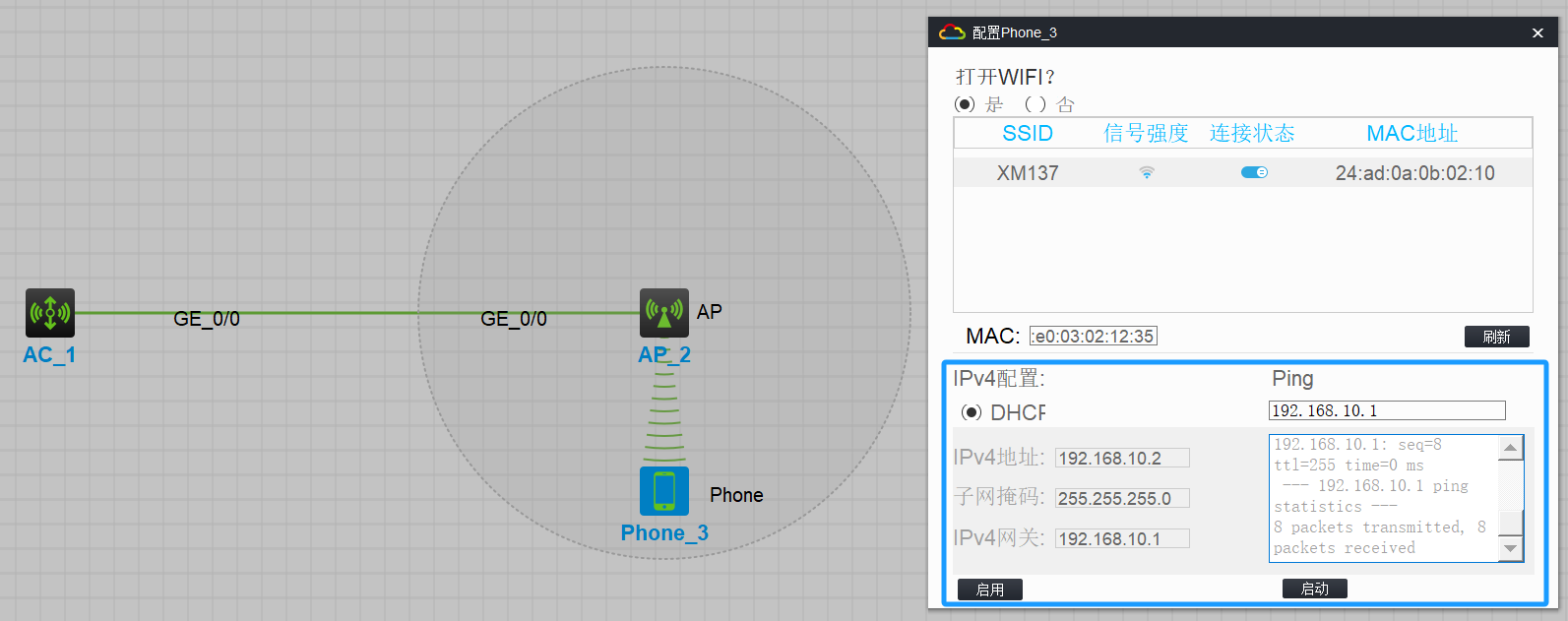 [AC-wlan-ap-24ad-0a0b-0200-radio-1]service-template wlan vlan 10 ## 绑定WLAN服务模板 和 VLAN10 到射频 1